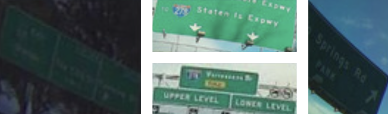 These signs are too dark, blurry or are cut off. Do not choose these as highway exit signs.