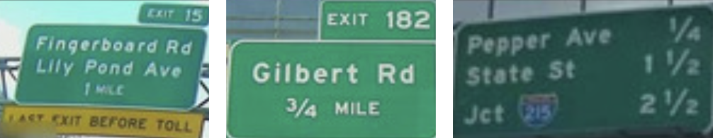 These are good examples of highway exit signs.