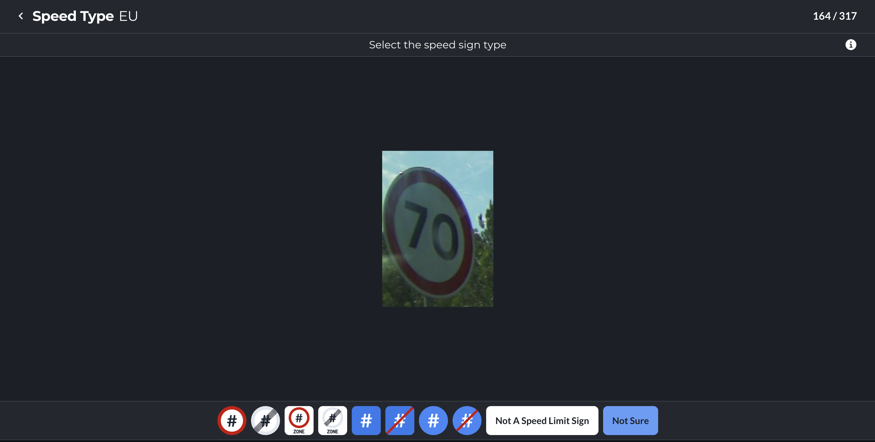 If there is not a match, press the `Not A Speed Limit Sign` button.