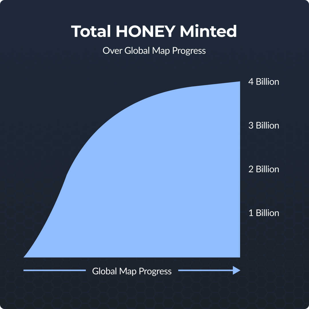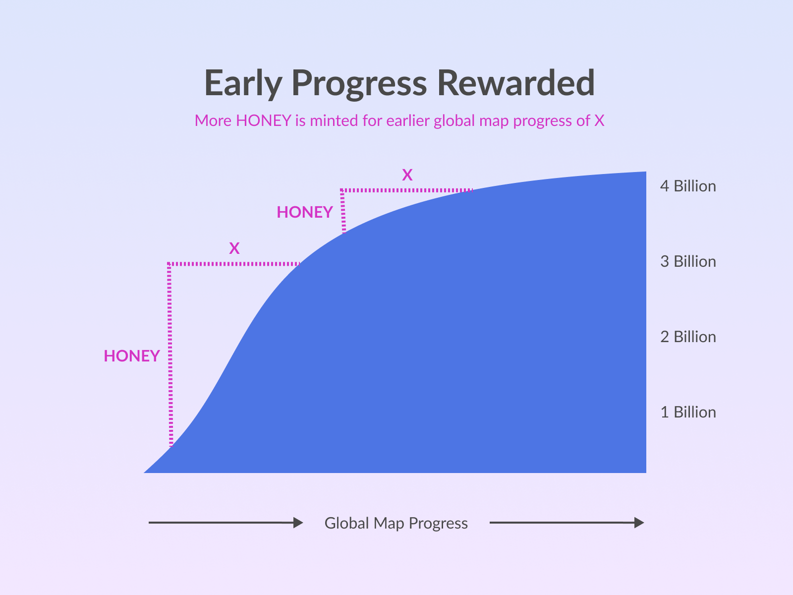 The amount of HONEY minted in a given week will be relative to the current period’s GMPU calculation and the total amount of GMPUs calculated in prior periods. Generally, earlier progress is rewarded with more HONEY than later progress.